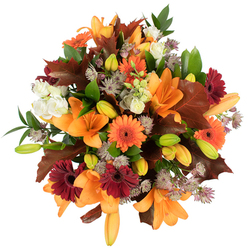 This image exudes joy as a vibrant bouquet of Gerbera daisies seems to capture the fresh, lively energy so characteristic of Rotherhithe. The arrangement, with its abundant blend of sunny yellows, lively tangerine oranges, and velvety magenta petals, forms a rich tapestry of colour that dances with the light. Each bloom's distinctive dark centre adds a grounding visual rhythm, while soft green leaves weave between them, offering texture and fullness reminiscent of walks along the Thames Path. The bouquet is hand-tied with the expertise found only in true local floristry, wrapped in tactile kraft paper and encased within a layer of shimmering cellophane that protects and accentuates the flowers' splendour. A transparent vase allows the entire length of every stem to be admired, their freshness a testament to same-day deliveries often sent to nearby Surrey Quays or riverside apartments. Fastened with a loop of rustic twine and a white tag bearing a red rose illustration, the ensemble feels both personal and elevated-ideal for marking anniversaries, sending thanks, or adding vibrance to a home. The image radiates an infectious sense of celebration, creativity, and thoughtfulness, encapsulating the artistic flair and welcoming nature for which Rotherhithe is known.