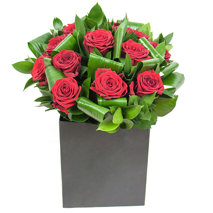 Elevate your home decor with our stunning bouquet, featuring vibrant red roses, lush aspidistra leaves, and delicate ruscus. Each flower is hand-picked to ensure unmatched freshness and quality, bringing a touch of elegance to any room.